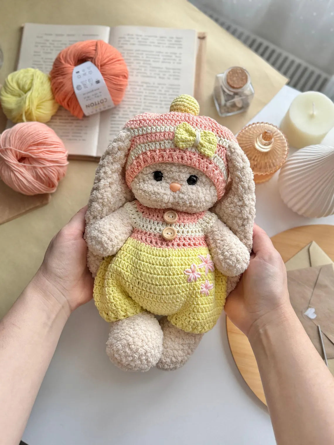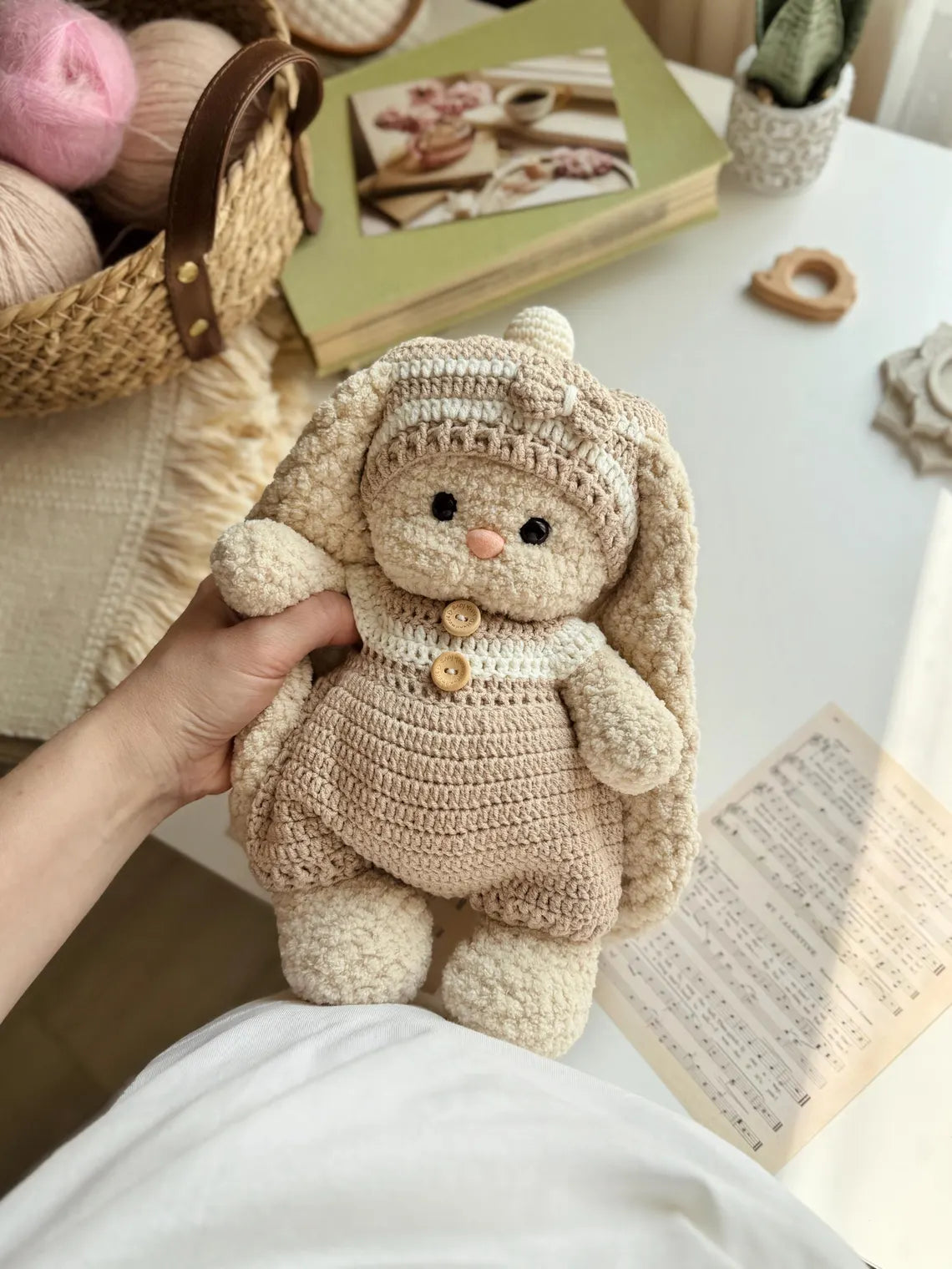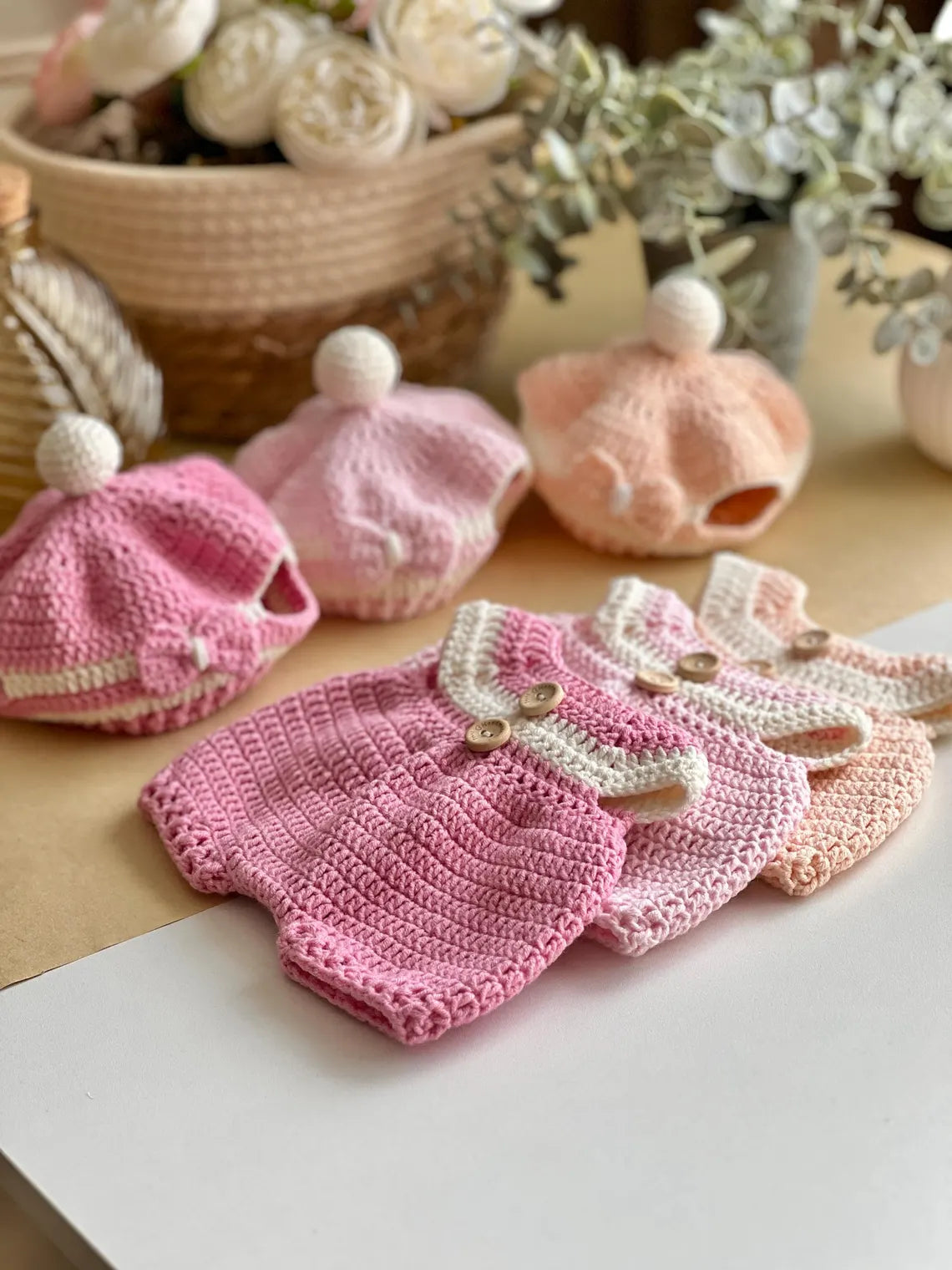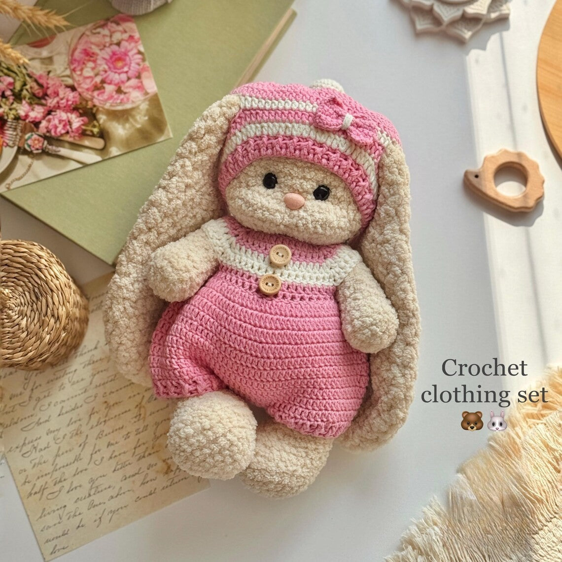 Craft charming outfits for your handmade bears, bunnies, or friends with this crochet pattern bundle. From cozy overalls to a dainty beret, each piece is thoughtfully designed to bring your plush pals to life.