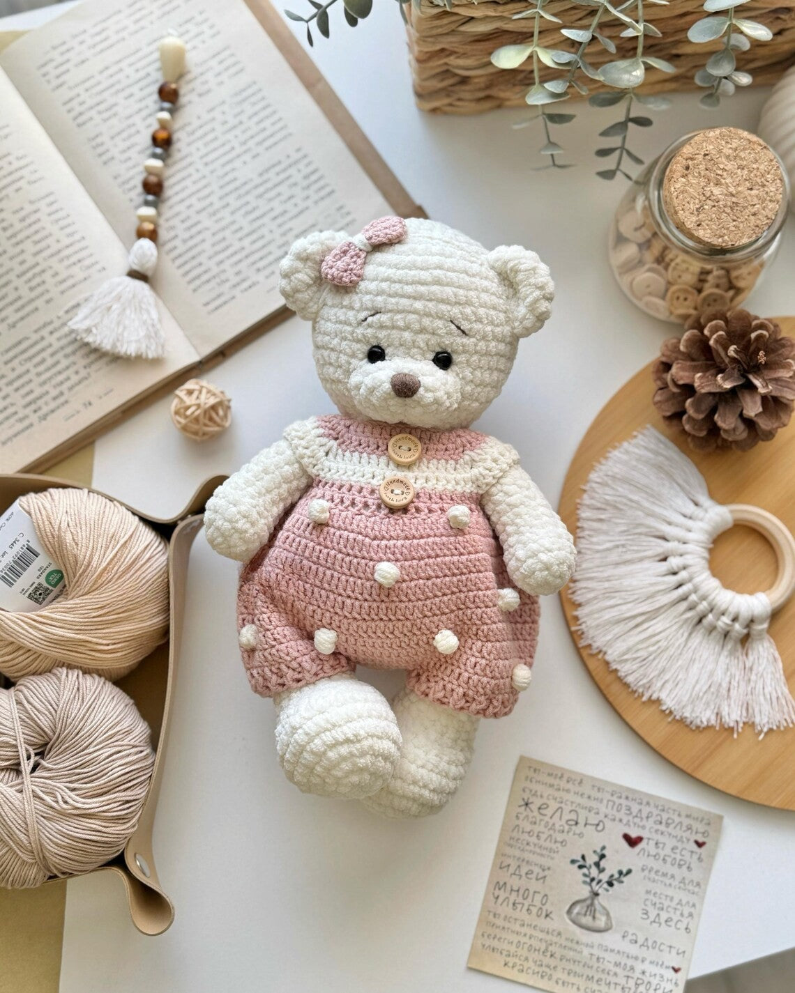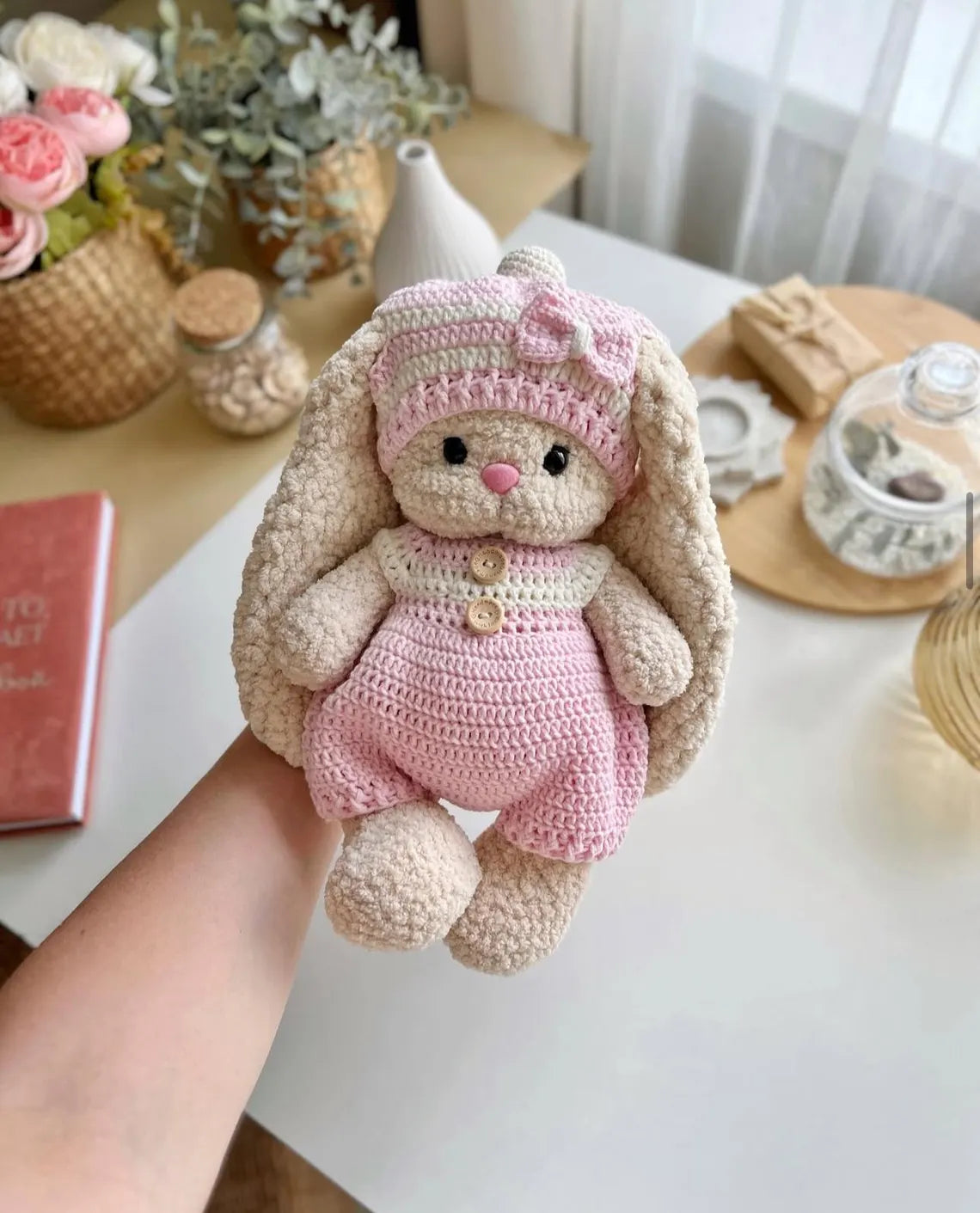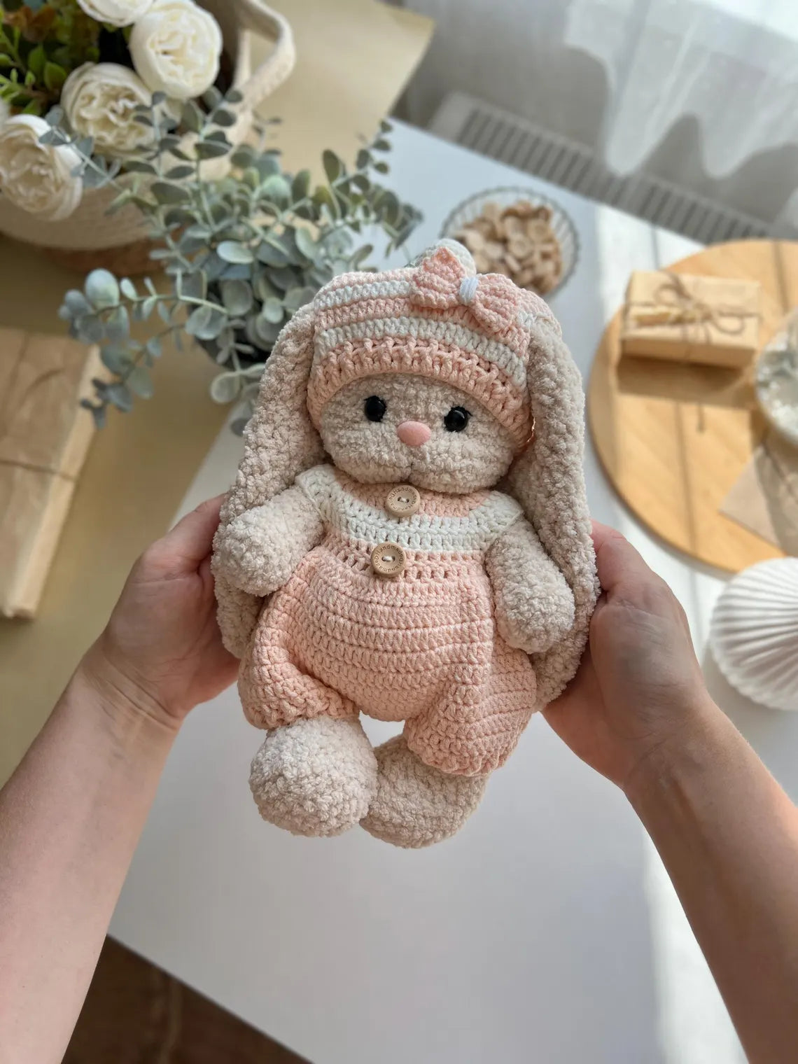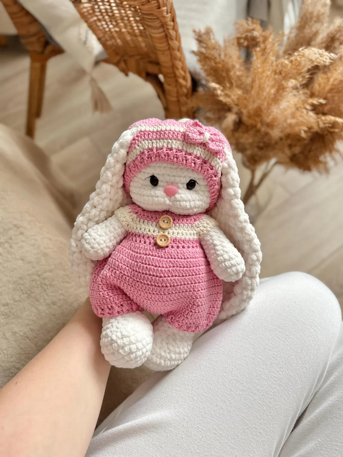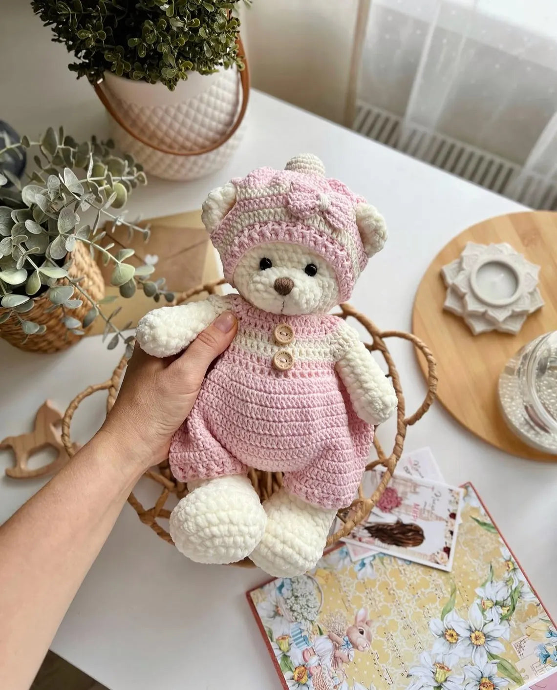 Craft charming outfits for your handmade bears, bunnies, or friends with this crochet pattern bundle. From cozy overalls to a dainty beret, each piece is thoughtfully designed to bring your plush pals to life.