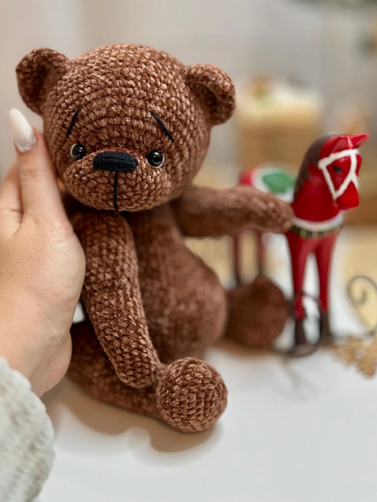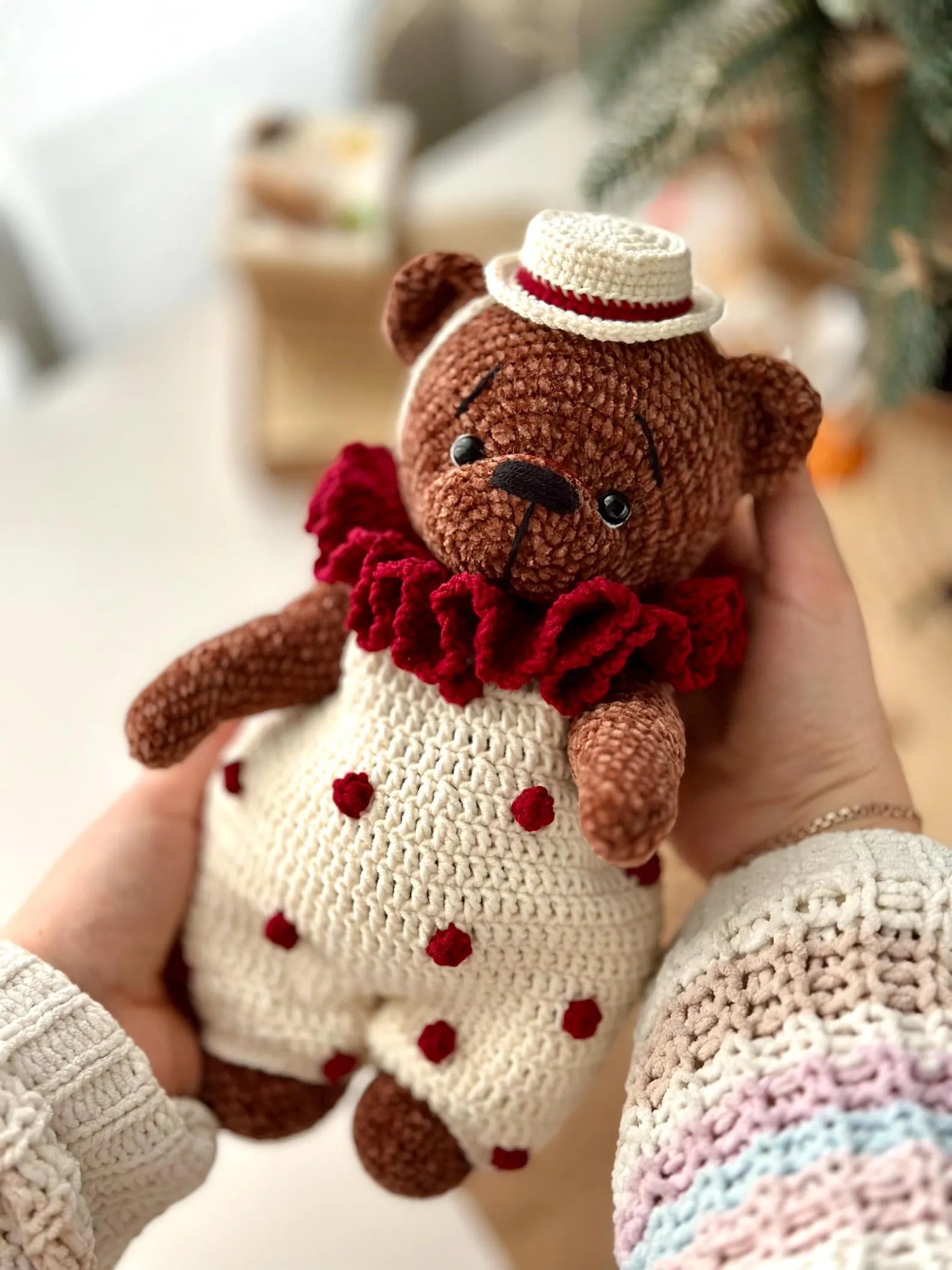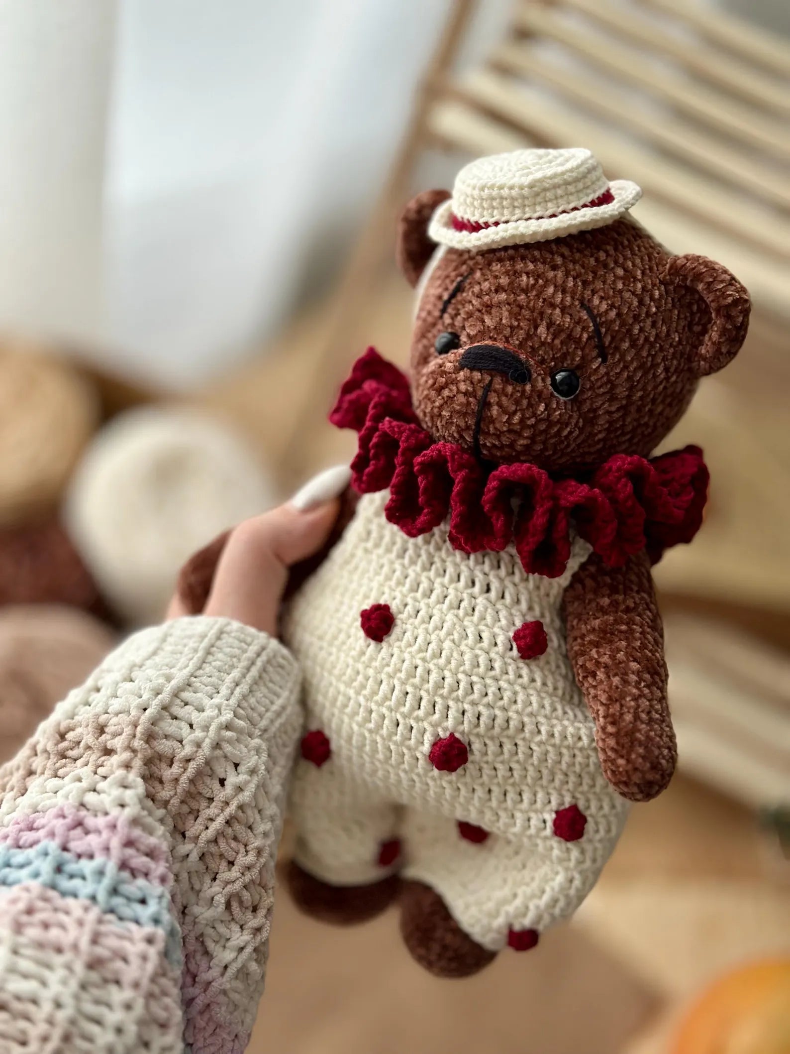 A Fun & Rewarding Project for Crocheters: The bear is movable and posable — it can sit on its own, and the clothes are completely removable, adding to the playfulness and versatility of the design.