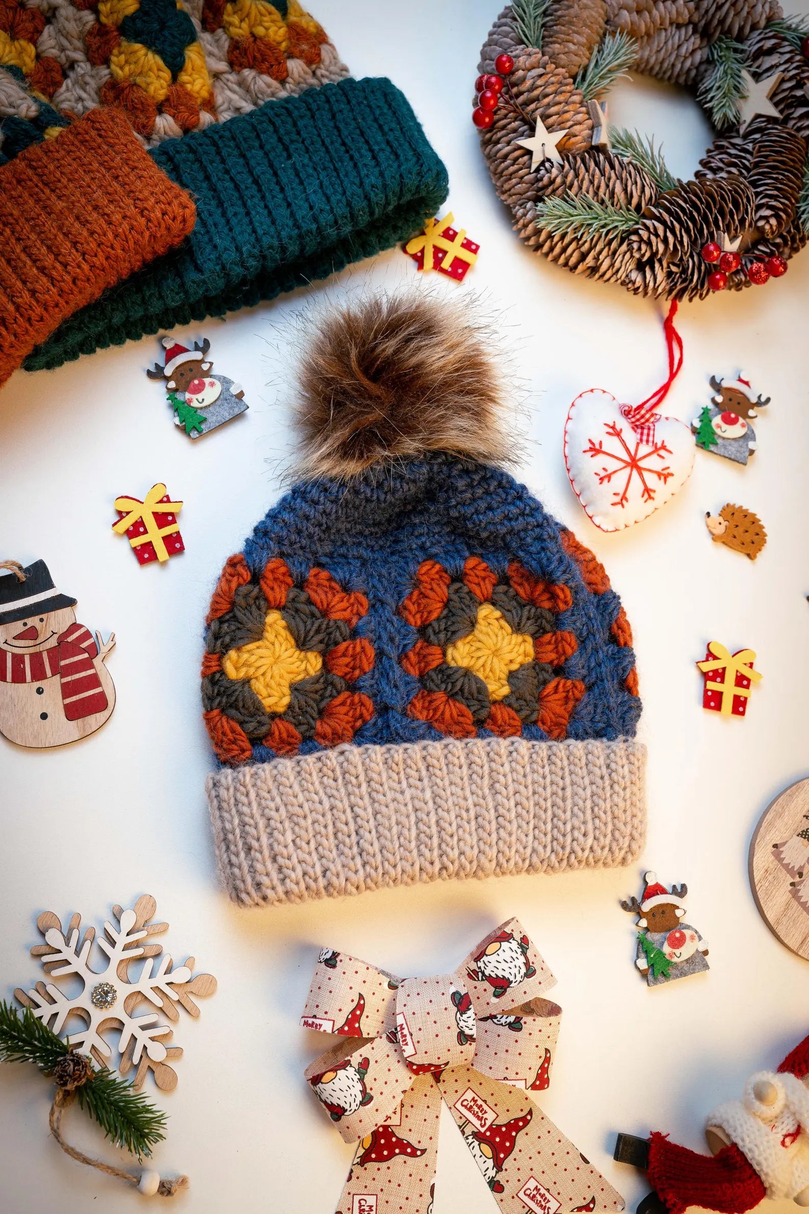 Nature-Inspired Style: The Granny Square Beanie embraces earthy, forest-inspired shades — think bark, moss, leaves, and soft winter landscapes.