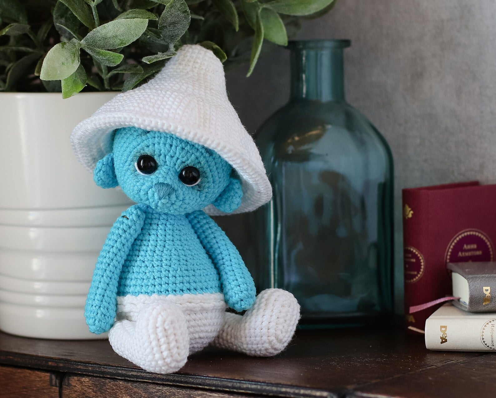 Amigurumi crochet pattern blue cat Mushroom ( like Smurf) - fantasy crochet animals - Mushroom crochet pattern - easy to follow crochet pattern