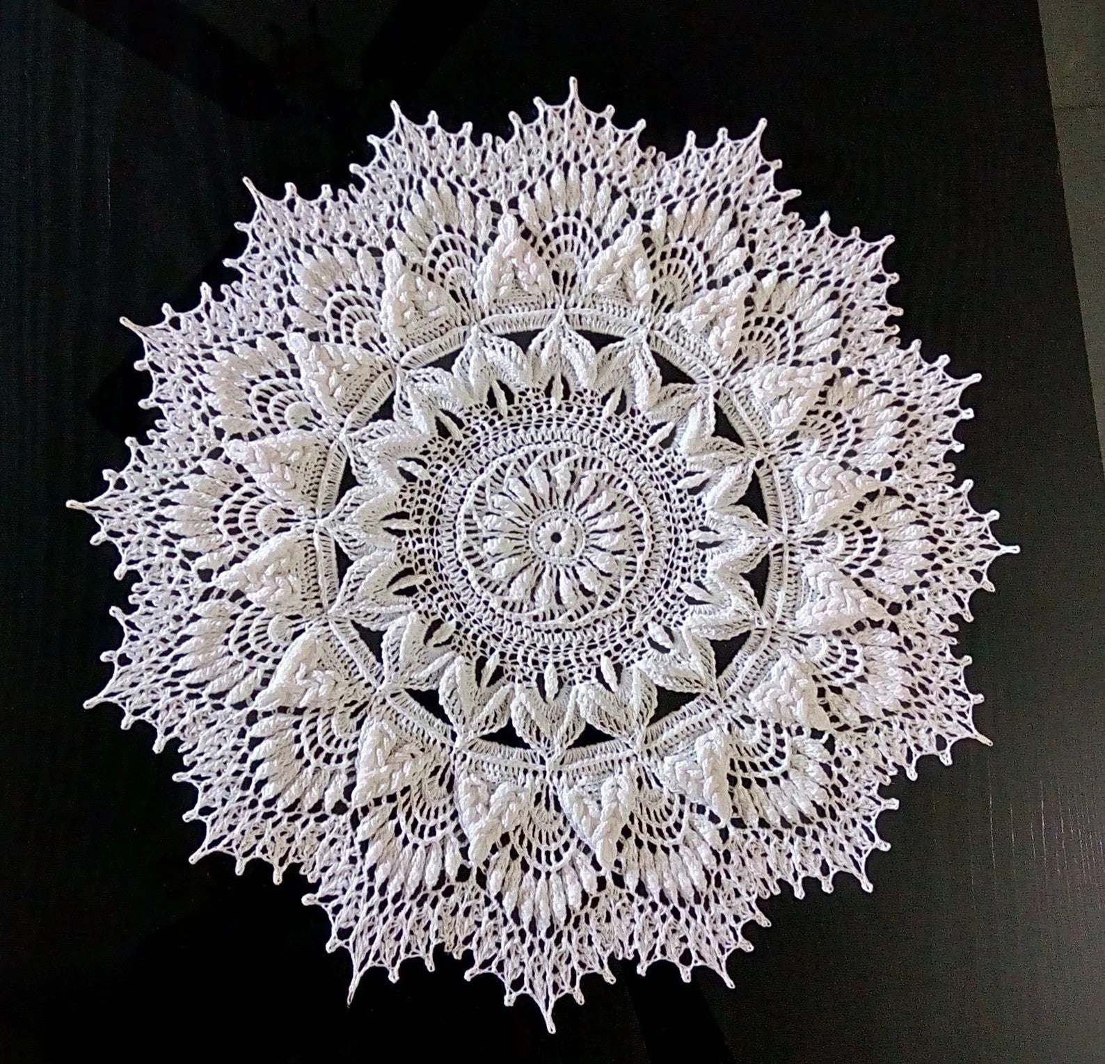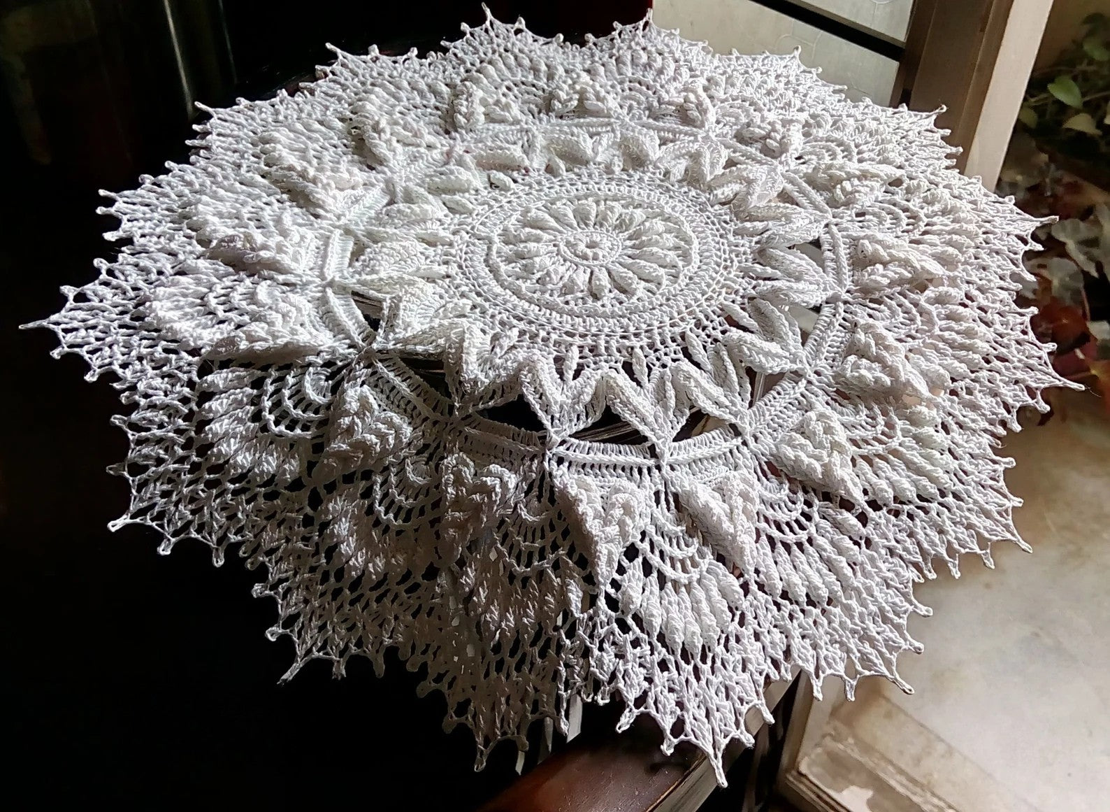 🧶 Rich Texture & Stunning Detail: The finished doily measures about 14.5 inches when made with mercerised cotton thread and a 1.75 mm steel hook—perfect as a centerpiece, under glassware, or as a timeless gift.